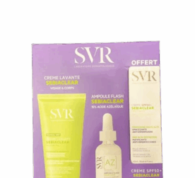 Coffret SVR Sebiaclear Anti-Acné Complet – Crème Lavante + Ampoule AZ + Crème SPF50+ OFFERTE | Peau Grasse Acné