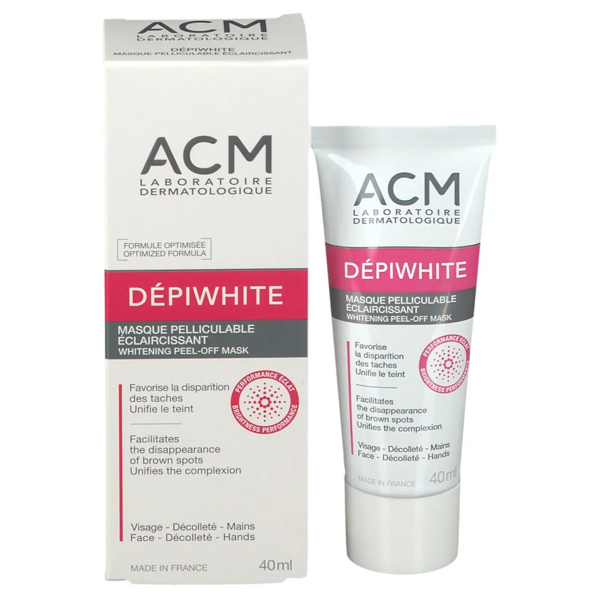 ACM Depiwhite Masque Pelliculable Éclaircissant destiné aux peaux présentant des taches brunes, le masque pelliculable éclaircissant forme un film occlusif à la surface de la peau qui permet une pénétration plus rapide et plus profonde des actifs.