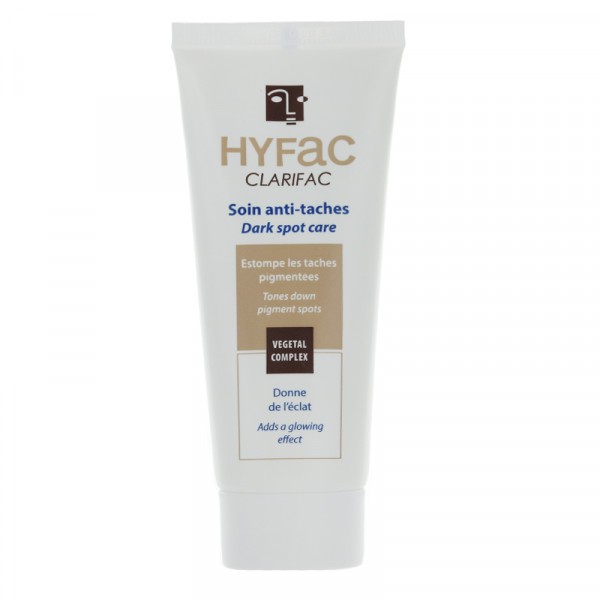Le soin anti-taches Clarifac de la marque Hyfac est un soin pour le visage destiné aux peaux qui présentent des taches pigmentées dues à l’exposition au soleil, à l’âge, à un traitement médicamenteux ou à des cicatrices résiduelles d’acné. Ce soin sous forme de crème permet d’estomper les taches, d’éclaircir le teint tout en apportant la juste dose d’hydratation à la peau et en la protégeant des rayons UV grâce à son SPF 30.