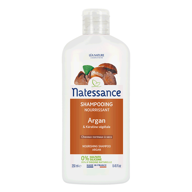 Natessance Shampoing Argan & Kératine Végétale 250 ml à la texture crémeuse nourrissante est un shampoing recommandé pour les cheveux normaux à secs.