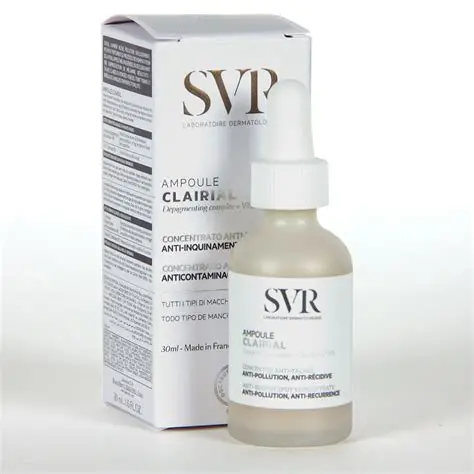 L’ampoule Clairial SVR est un concentré anti-taches, anti-pollution, anti-récidive qui convient à toutes les peaux, même les sensibles. Si vous présentez des taches brunes sur le visage, le décolleté ou les mains, ce soin anti-taches est pour vous. Qu’elles soient dues au soleil, au vieillissement cutané, à la grossesse ou à des imperfections, Clairial Ampoule permet de corriger et de réduire les taches brunes existantes dès 2 semaines. Par ailleurs, sa formule triple action (anti-taches, anti-pollution et anti-récidive) permet de prévenir et de limiter leur réapparition.